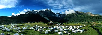 景區(qū)面積400平方公里,屬寒溫帶濕潤(rùn)性高山復(fù)合帶生態(tài)系統(tǒng)。在海拔3200米到4500米的垂直范圍內(nèi),植物群落帶分明,森林茂密原始,生態(tài)完整,分布有亞高山針葉林、高山櫟林、高山灌叢草原和高山流石灘植被。