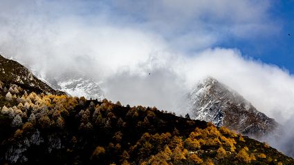 4月16日,筆者在康定市雅拉鄉(xiāng)境內(nèi),再次拍攝到國家二級保護(hù)動物白腹錦雞求偶的清晰視頻。一只色彩斑斕的雄鳥,拖著黑白相間的云狀斑紋尾羽,圍著雌鳥跳起了“圓舞曲”。整個求偶過程有十多分鐘。每年三至五月是白腹錦雞求偶期。