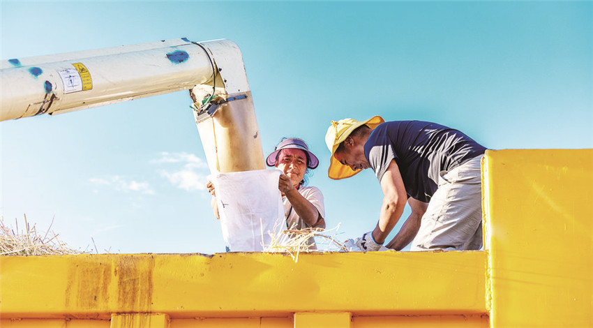 甘孜縣是我州的農(nóng)業(yè)大縣,也是全國(guó)青稞商品糧基地之一,素有“康北糧倉(cāng)”的美譽(yù)。日前,在甘孜縣仁果鄉(xiāng)青稞收割現(xiàn)場(chǎng),一望無垠的田地里麥浪滾滾、麥香四溢,一臺(tái)臺(tái)聯(lián)合收割機(jī)在金色的青稞地里來回馳騁,時(shí)不時(shí)停下來“吐出”金燦燦的青稞,農(nóng)戶們的臉上露出豐收的喜悅笑容。