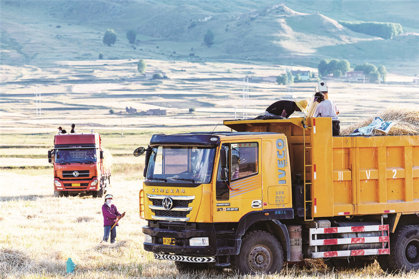 一望無邊的農(nóng)田里,谷粒飽滿,一陣風(fēng)吹來,金黃色的青稞隨風(fēng)起舞。收割機(jī)正來回穿梭,不一會(huì)兒就裝了滿滿一車……入秋后,甘孜縣迎來秋收時(shí)節(jié),到處呈現(xiàn)出一派豐收的景象。