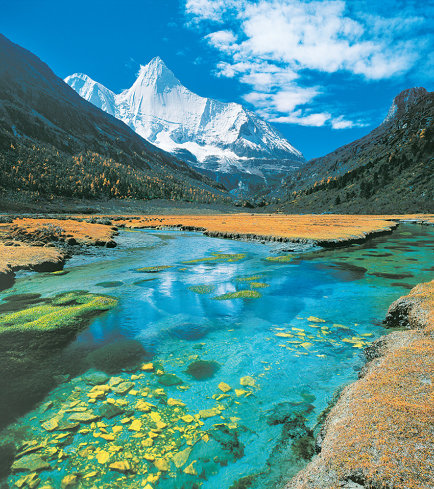 稻城亞丁深藏于甘孜州西南部川滇交界處一隅,自上世紀20年代美國探險家約瑟夫·洛克到訪并通過《國家地理雜志》撰文介紹、英國作家詹姆斯·希爾頓掀起一股尋找香格里拉的熱潮后,由于戰(zhàn)亂頻仍等原因,便長期“養(yǎng)在深閨人未識”。1995年,我省著名攝影家呂玲瓏偶然闖進這片神圣的土地,再次“發(fā)現(xiàn)”這顆遺落深山被歲月塵封的明珠,稻城亞丁通過他的一系列影像“橫空出世”,重新震驚世人。