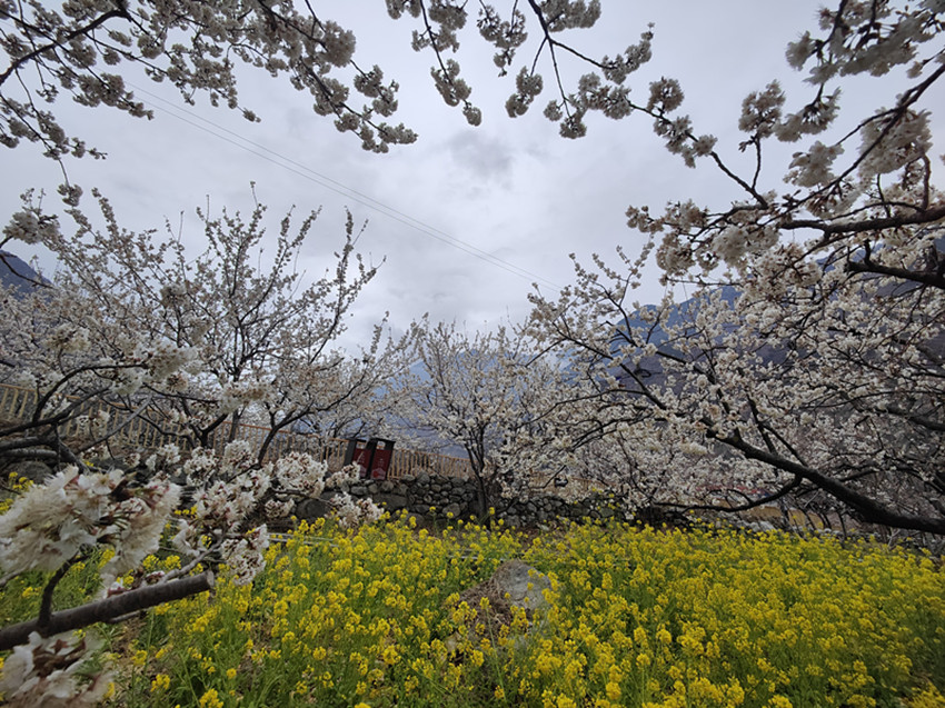 不同于油菜花的燦爛,瀘定縣冷磧鎮(zhèn)千畝櫻桃花,堆雪疊紗、滿山漫白,為整個(gè)山谷的金黃璀璨增添了一道恬謐的寧靜。