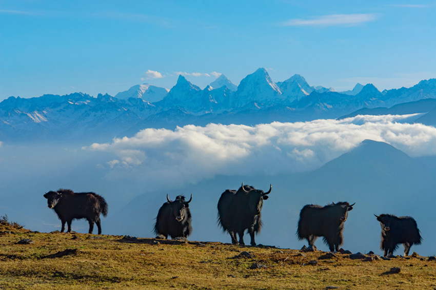 正因為貢嘎雪山具有這樣的特點(diǎn),一代接一代的攝影人為了看到與眾不同的貢嘎雄姿,不辭辛勞,不斷尋找新的拍攝角度、不同的拍攝機(jī)位和發(fā)現(xiàn)新的景觀,只為從另一個視覺一睹貢嘎雪山的尊容。