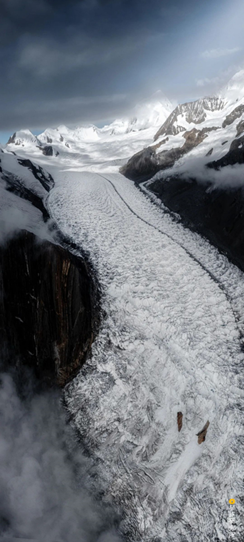 無論是在金色的草原、在蔚藍的湖畔,還是登上一座山,望向另一座山,整個甘孜有大約50座6000米以上的山峰,超過5000米的山峰更是高達600多座,是一個天然的雪山觀景臺。能誕生如此多的雪山,因為甘孜本就站在巨人的肩膀之上,它屬于平均海拔超過4000米的青藏高原,且位于青藏高原東部最為險峻的高山峽谷區(qū),兩條南北走向的山脈,大雪山和沙魯里山構成甘孜的基本骨架,大雪山聳立在甘孜的東部,它從深切的大渡河與雅礱江河谷之間拔地而起格外險峻,大雪山南部海拔7508.9米的貢嘎山一騎絕塵,成為整個橫斷山脈的制高點,也是整個四川的制高點,群峰聳峙的它是天生的主角。在它周圍,一條條冰川如綢帶、如彎刀、如洪流從山坡之上蜿蜒而下。