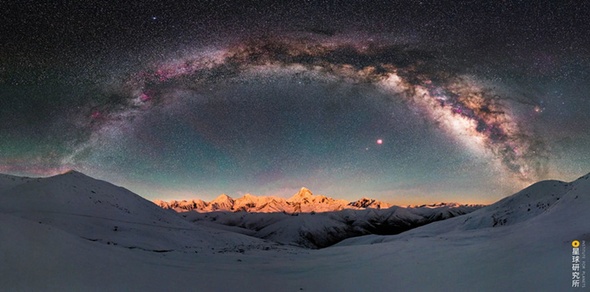 大雪山北部,海拔5884米的雅拉雪山與貢嘎遙相呼應,日落時分聳立在原野之上的雅拉被霞光籠罩如同大地的王冠;沙魯里山縱貫甘孜西部,它南北長約450公里,寬約200公里是四川最寬最長的山脈,它山勢平緩,置身其中有時都感覺不到山的存在,但同時,它高大巍峨,盛產(chǎn)超過6000米的獨立山峰,沙魯里山脈北段有海拔6168米的雀兒山,它的中段有海拔6174米的格聶山,它的南段有三座6000米級山峰組成的稻城三座雪山,彼此距離不過5-7千米,三山合圍之中給人強烈的視覺震撼和心靈沖擊。動輒直抵云霄的海拔,加上相對原始的環(huán)境,使得這里空氣潔凈度極高、光污染小,夜幕落下、銀河升起,云端之色變成一片攝人心魄的星光。