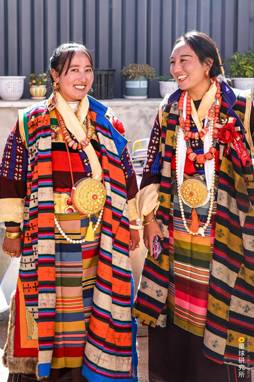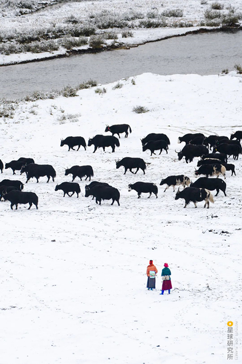 高原上定居不易而自然還有更多的考驗,高寒貧瘠的土地,山脈阻隔的交通,峽谷中蓄勢的山洪,斷裂帶上頻繁的震顫,隨時都可能給人們的生活籠罩上一層陰影。所幸從古至今,不斷地適應、不斷地創(chuàng)造,成為了這片人間的底色。為了抵御高原的寒冷,人們用山羊等動物皮毛織起布匹,縫制寬袍長袖的袍子,發(fā)展出特色鮮明的藏裝;為了對抗物產的貧瘠,人們飼養(yǎng)牦牛,從牦牛奶、牦牛肉中獲取營養(yǎng),用牦牛毛織成的布料做帳篷,點燃牦牛糞生火。