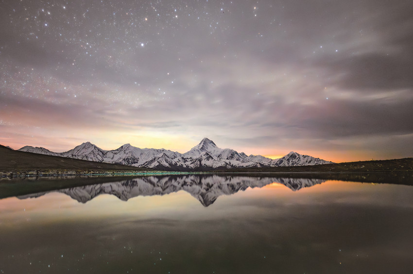 我州地廣人稀、海拔較高,光污染較少,離康定城區(qū)不遠(yuǎn)的折多山頂、子梅埡口、雅哈埡口等地,云層稀薄,空氣干燥,視野開闊,晴朗天氣下,每當(dāng)夜幕降臨,銀河肉眼清晰可見,如煙似紗,置身其中,如夢似幻。星河像一道氣勢磅礴的瀑布、一幅色彩斑斕的油畫、一束絢麗多彩的禮花,令人贊嘆,驚艷眼球,壯美異常。