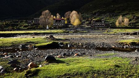 湛藍(lán)的天空下,雄鷹在盤旋,牛羊在安詳?shù)芈匠圆?,靜靜的小河在山邊蜿蜒流淌,充滿綠意的白楊樹在風(fēng)中搖曳,藏式民居不時(shí)升起縷縷炊煙,寂靜、空曠的原野深處偶爾會(huì)傳來(lái)幾聲狗叫高原的陽(yáng)光又賦予這幅風(fēng)景畫凝重的色彩這樣的畫面叫人心醉,讓人留戀忘返從折多山腳下至新都橋鎮(zhèn),再至塔公草原,處處都是入畫的美景,不愧稱為“攝影家的天堂”。