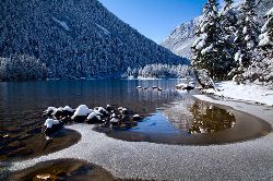 進(jìn)入木格措的冬天就是進(jìn)入了一片美麗的冰雪天地,然而在這里,除了冰雪,還有陽(yáng)光、沙灘、藍(lán)天處處充滿著浪漫的氣息。早晨,當(dāng)你站在海拔3780米的木格措海子觀景臺(tái)前,閉上眼睛細(xì)細(xì)品味雪山后暖暖陽(yáng)光照射在身上的感覺(jué);工作、生活、煩惱……一切拋在腦后!在景區(qū)的樹(shù)上到處是漂亮的冰掛,讓人仿佛一下子進(jìn)入純潔晶瑩的人間仙境;在海子旁自然形成的一大片名為黃金海岸的沙灘,更是給來(lái)到這里的人們帶來(lái)情海的感受。
