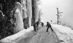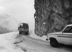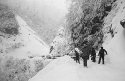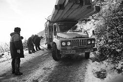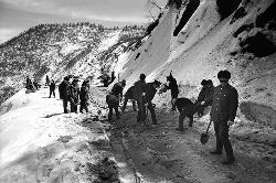 一九九七年十一月二十四日,連續(xù)多日大雪,把整個(gè)二郎山裹得嚴(yán)嚴(yán)實(shí)實(shí),白茫茫一片。陣陣山風(fēng)吹過(guò),大霧就像瀑布一樣,從山頂直往下翻涌?jī)A瀉。 一大早,州交通局打冰除雪排險(xiǎn)的干部職工就從二郎山管理站直奔山埡口。載有防滑砂的大貨車(chē)穿迷霧,繞山梁,向山頂埡口疾馳。由于氣溫太低,霧又大,車(chē)上的擋風(fēng)玻璃很快就結(jié)下了冰,路面打滑非常嚴(yán)重。前面車(chē)輛堵了起來(lái),排險(xiǎn)人員只好下車(chē)步行。 大霧彌漫,能見(jiàn)度很底,陰霾的天空又飄起了紛紛揚(yáng)揚(yáng)的雪花,剌骨的寒風(fēng)陣陣襲來(lái),只聽(tīng)見(jiàn)車(chē)蓬布在風(fēng)中“嗶剝”作響,卻看不見(jiàn)前面到底堵了多少車(chē)。排險(xiǎn)人員只好相互攙扶踩著冰滑的邊路艱難地向行。好不容易來(lái)到堵在最前面的車(chē)子面前。原來(lái)是一輛載著原木的東風(fēng)牌大貨車(chē)側(cè)滑在公路上,把整個(gè)公路堵死了。 局領(lǐng)導(dǎo)當(dāng)即指揮大家用鋼釬、鐵鎬和鋤頭處理冰道,沒(méi)有撮箕,大家借來(lái)加水桶裝運(yùn)冰雪……氣溫仍在急劇下降,剛從雪堆里刨出來(lái)的路,又被結(jié)起一層冰,就像地面上澆上了油,這就是冰雪道上有名的“桐油凌”。 有二位老同志不顧年老體弱,積極參與打冰除雪,一個(gè)在打冰時(shí),被彈起的冰碴把腦門(mén)劃了一個(gè)口子,鮮血直往外冒。有人想幫他包扎,他堅(jiān)決不干,自己就用手帕按住,把帽子向下拉蓋住傷口就算了。血從手帕中浸透出來(lái),與眉毛上的冰凌結(jié)在一起。氣溫太低,冰層太厚,十字鎬每挖一下,多數(shù)情況下也就是挖下一個(gè)白點(diǎn)而已。不一會(huì)兒,另一位老同志已是滿(mǎn)頭大汗,大家勸他休息一下,他卻說(shuō):趁著現(xiàn)在雪不是太大,早點(diǎn)把主道上的冰雪多除點(diǎn),過(guò)往二郎山的車(chē)輛就多一份安全。 排險(xiǎn)人員的手凍紅了,刨冰雪碰傷的指頭還流著鮮血,身上蒸發(fā)的熱氣,把衣領(lǐng)口、袖子口和褲子口結(jié)成了冰,可是,誰(shuí)也沒(méi)有吭一聲。 ……受堵車(chē)輛終于向前開(kāi)動(dòng)了。 風(fēng),越刮越猛,雪,越來(lái)越大。 防滑車(chē)在冰雪道上艱難地向前爬行著,車(chē)箱上面的職工們揮舞的洋鏟向路面撒著防滑砂。一路上風(fēng)絞雪,防滑車(chē)象一頭不聽(tīng)使喚的牛,顛簸、亂竄,好不容易才來(lái)到260(二郎山最險(xiǎn)處),對(duì)這里“桐油凌”路面進(jìn)行重點(diǎn)防滑處理后,防滑車(chē)又返回來(lái),開(kāi)始向山頂進(jìn)發(fā)……風(fēng)雪二郎山上打冰除雪、防滑排險(xiǎn),看似沒(méi)有驚天動(dòng)地的壯舉,身臨其景才知其艱難辛苦。難怪當(dāng)年每每經(jīng)過(guò)二郎山冰天雪地奇險(xiǎn)路段的車(chē),都會(huì)向風(fēng)雪中屹立路邊的交通系統(tǒng)排險(xiǎn)保暢通的職工們鳴笛致敬,風(fēng)雪中的那份情彌足珍貴。 川藏線(xiàn)上的老司機(jī)傳下來(lái)一首傷心的順口溜:“車(chē)過(guò)二郎山,如闖鬼門(mén)關(guān),萬(wàn)幸不翻車(chē),也要凍三天!”其險(xiǎn)峻實(shí)為罕見(jiàn),尤其是途經(jīng)二郎山260(公路公樁)處,曾被淡虎色變的人稱(chēng)為“鬼招手”的險(xiǎn)路段。 1983年1月3日,有著安全行車(chē)44萬(wàn)公里記錄的一位駕駛員開(kāi)著輛嶄新的東風(fēng)牌貨車(chē),同行還有兩名職工,夜行二郎山,在彌天大霧中神秘地“失蹤”了。十五天后,搜山的人才用望遠(yuǎn)鏡看到260公里路樁處的山崖下,有一塊汽車(chē)破篷布掛在樹(shù)枝,猶如招魂的凄厲幌幡在冷風(fēng)中招搖晃動(dòng)。鋼纜繩吊著搜山的人下到崖下400米深處的谷底。扒開(kāi)一座座雪堆,叫人汗毛倒豎:雪堆下,盡是廢大梁、爛車(chē)廂、銹車(chē)頭和支離破碎的汽車(chē),足有一個(gè)汽車(chē)連!一輛不知埋了多久的卡車(chē)廂里牛肉已腐爛,駕駛室里坐著三具發(fā)黑的僵尸……其狀慘不忍睹!