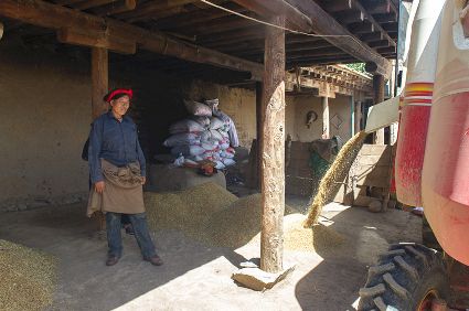 近日來(lái),我州等地天氣情況轉(zhuǎn)好,當(dāng)?shù)夭刈逋プ∮欣r(nóng)時(shí),利用大型農(nóng)機(jī)和人力搶收青稞。據(jù)了解,川藏公路國(guó)道317線甘孜段(爐霍至馬尼干戈段)2013年改造完成后,當(dāng)?shù)厝罕娍梢酝ㄟ^(guò)317線方便地運(yùn)輸糧食和大型農(nóng)機(jī)具,農(nóng)業(yè)生產(chǎn)條件得到很大改善。(新華社記者 胡超攝)
