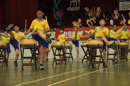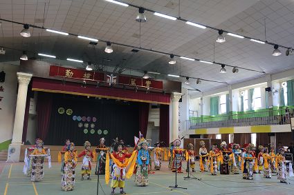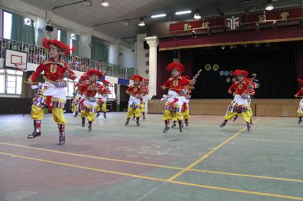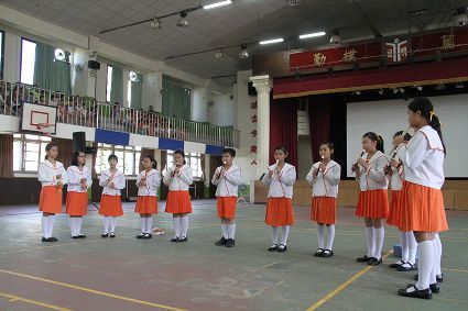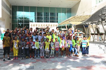 在臺(tái)北明道小學(xué)的演出結(jié)束后,合唱團(tuán)小朋友與該校小朋友合影。