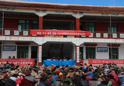 在此次宣講活動中,我州建立了州、縣、鄉(xiāng)、村“四級”宣講網(wǎng)絡(luò),將群眾宣傳教育與群眾工作全覆蓋、法治甘孜、創(chuàng)建全國民族團(tuán)結(jié)進(jìn)步示范州等活動有機(jī)結(jié)合,突出主題宣講,注重特色宣講和典型宣講,創(chuàng)造性地啟用了“草根宣講員”以及面對面“1+N”宣講,派會當(dāng)?shù)卣Z言的宣講老師進(jìn)行宣講,形成了層次分明、重點(diǎn)突出的立體宣講體系,實(shí)現(xiàn)了從剛性宣教向柔性宣教、從說教向寓教、從蜻蜓點(diǎn)水向潛入內(nèi)心的“三個(gè)轉(zhuǎn)變”。