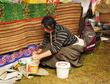 達(dá)珍和她的丈夫是我州爐霍縣宗塔草原上普通的牧民,育有一對(duì)兒女,都在縣上讀書(shū),小兒子上小學(xué),大女兒讀初中,放暑假,11歲的女兒回到了牧場(chǎng),幫助阿爸、阿媽放牧。女兒的到來(lái),讓達(dá)珍家每一天都充滿了歡笑,7月中旬的一天,筆者來(lái)到了這里,用像機(jī)記錄了達(dá)珍的一個(gè)早晨,那是一個(gè)朝霞滿天的開(kāi)始?!?郭昌平 攝影報(bào)道