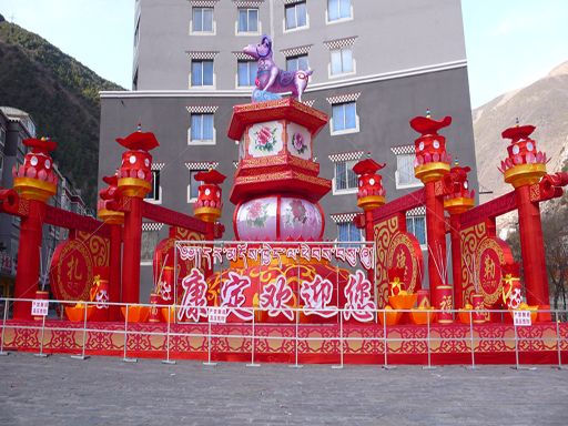 除了購買年貨的人群外,今年康定街頭的燈飾也讓人耳目一新。在康定東關(guān)入城大道、情歌廣場(chǎng)、情歌大廈和將軍橋等地,一組組燈飾格外引人注目。到了夜晚,節(jié)日的康定城更是流光溢彩、美不勝收。