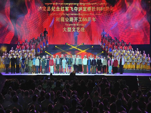 5月29日晚,一臺(tái)由中共瀘定縣委、瀘定縣人民政府主辦,四川師范大學(xué)承辦的瀘定縣紀(jì)念紅軍飛奪瀘定橋勝利80周年暨川藏公路開工65周年大型文藝晚會(huì)《永遠(yuǎn)的豐碑》在瀘定縣瀘定橋廣場震撼上演,200多名演職人員參與演出,萬余人現(xiàn)場觀看。