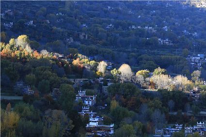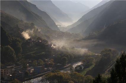落日將最后一道霞光在山尖劃過(guò),暗夜便裹挾這寒意搖動(dòng)起山林中的樹(shù)木。風(fēng)漸緊,那已經(jīng)稀稀落落的樹(shù)葉隨著風(fēng)的韻律,跳起歡快的鍋莊,仿佛在告別這一年的繁華。突如其來(lái)的大雪,給丹巴的二月涂上白色的記號(hào)。從山尖到院前的樹(shù)上,一溜兒雪白,正應(yīng)了“忽如一夜春風(fēng)來(lái),千樹(shù)萬(wàn)樹(shù)梨花開(kāi)”的情景,讓人忍不住伸出手指看看這花是真是假。大雪過(guò)后,陽(yáng)光如約而至撒滿藏寨,金色陽(yáng)光和蒸騰的白霧縈繞在雪白的山頭,與山下的古碉藏寨,河畔的清流巧妙地構(gòu)成一幅絕美畫卷,讓人仿佛身處仙境。吸足了養(yǎng)分的柳樹(shù)終于抽出綠芽送來(lái)春天的信號(hào),那柳條兒在細(xì)風(fēng)吹拂下宛如少女對(duì)鏡梳妝,在陽(yáng)光下顯得無(wú)比溫柔,讓人不禁想貼近它們,感受這溫暖又靜謐的溫柔。