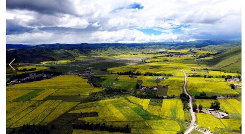 七月的川西高原是一年當中最美的季節(jié)。甘孜州雅江縣祝桑鄉(xiāng)境內(nèi)、省道303道孚縣境內(nèi),漫山遍野的油菜花,一朵朵,一簇簇,一片片,仿佛一片金色的海洋。微風(fēng)拂過,綠葉上的菜花隨風(fēng)搖曳,宛若千層波浪涌動。藍天白云下,金色的菜花光彩奪目,花香四溢,蜜蜂、蝴蝶在花朵上翩翩起舞,你追我趕,好一幅世外田園的高原風(fēng)光,猶如一幅巨幅油畫鋪在川西大地上。