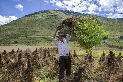 康定市姑咱鎮(zhèn)達(dá)杠村村民李翠軍一邊采摘著蘋果,一邊喜悅地告訴記者,達(dá)杠所產(chǎn)的蘋果個(gè)頭大、色澤好、吃味好、耐儲藏,到目前,全村蘋果種植面積800多畝,去年蘋果產(chǎn)量160萬斤,今年雨水好,蘋果產(chǎn)量將猛增到200萬斤以上。目前,村子里蘋果種植大戶家庭年收入過10萬元的就有20多戶。康定市將達(dá)杠村打造成川藏觀光農(nóng)業(yè)第一村。按照規(guī)劃,村里會進(jìn)一步擴(kuò)大蘋果種植面積,以蘋果利用為核心,發(fā)展“春賞花、夏攝影、秋摘果、冬體驗(yàn)”四季觀光農(nóng)業(yè)產(chǎn)業(yè)。五谷豐登六畜興旺,甘孜高原共慶豐收。農(nóng)民豐收節(jié),它既是億萬農(nóng)民慶豐收、曬豐收的節(jié)日,也是全社會享豐收、助增收的節(jié)日;既寄托著農(nóng)民的追求、農(nóng)民的希冀,也承載著全體中華兒女的深情與追憶;中國農(nóng)民豐收節(jié),農(nóng)牧民收獲的不只是甜蜜蜜的果實(shí),鼓起的不只是沉甸甸的荷包,更是滿滿的榮譽(yù)感、幸福感、獲得感!