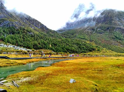 燦爛的陽光伴隨幾場秋雨秋霜過后,亞丁的秋天便更加絢麗多彩,漸黃的草地和青楊林開始爭奇斗艷,稻城的美變得更加富有層次,幾乎是一天一個變化,一天一個景色。山與水、人與情,一步一勝境。大片大片的高原草甸現(xiàn)在已經(jīng)逐漸變?yōu)辄S綠色,環(huán)抱高原海子的水草也由養(yǎng)眼的綠色向迷人的金色過渡。藍天白云、金色草甸、紅楓映白樺、秋水繞山間,幽靜的小徑,融合了感性的色彩和理性的沉靜,既有成熟的風韻,又有灑脫的禪境。木質(zhì)棧道以“曲徑通幽”的姿態(tài)環(huán)景分布,所經(jīng)之地為負氧離子含量相對較高的森林區(qū)域,漫步林中,令人心曠神怡。無論是傳統(tǒng)的團隊游,還是個性化的自助游、自駕游,在這里都能找到屬于自己的那份愉悅。