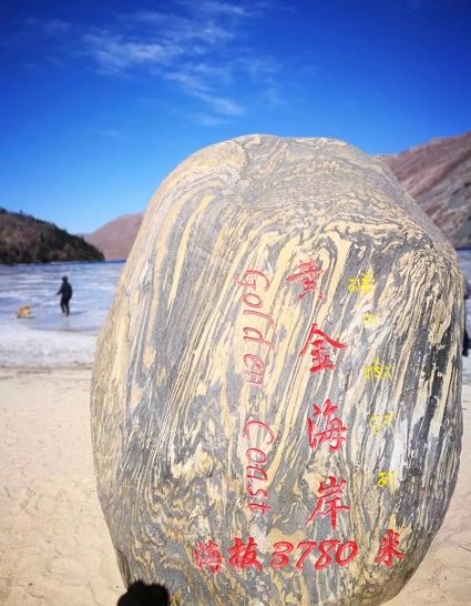 在木格措(野人海)的左邊就是被譽為“愛情灘”的黃金沙灘,很多有情人在這里許下愛情的誓言,草木生靈都作為見證。圍繞海子自然形成的沙灘在高原是很罕見的,當(dāng)春天來臨,冰面漸漸舒展開,浪花也席卷而來,在黃金海岸,你可以逐浪玩沙。