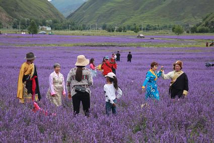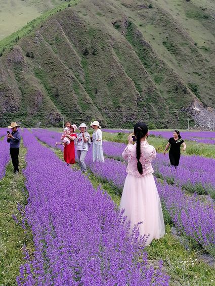 自6月中旬開始,康定市新都橋鎮(zhèn)東俄洛二村的570多畝薰衣草花盛開,引得各地游客前來觀光旅游。各大微信公眾號、抖音短視頻平臺、微博大V紛紛發(fā)布“攝影天堂薰衣草花海絢麗綻放”的視頻、圖文信息,該景點儼然成為甘孜州新晉的網(wǎng)紅景區(qū)。