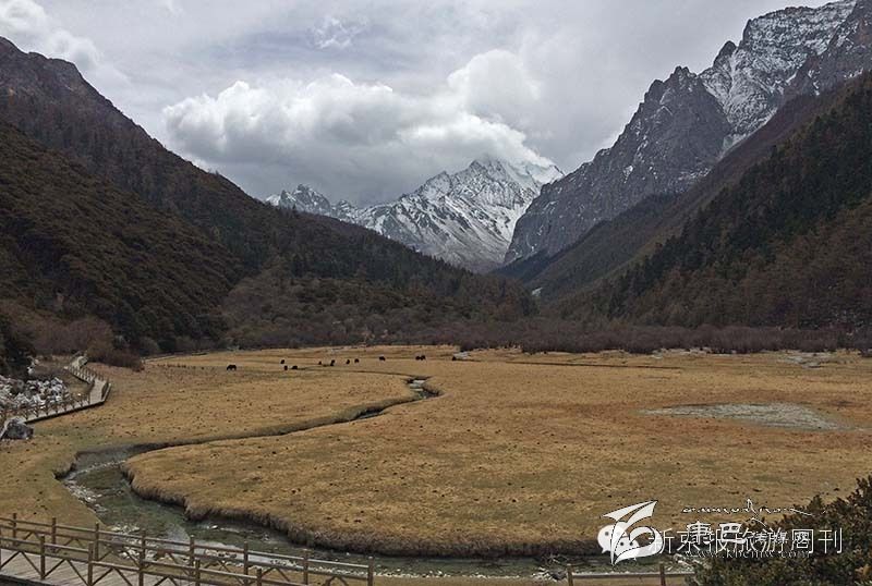 如果一直往里走,可以到達地獄谷,據說每一片石頭都是刀刻一樣的尖銳,那里還有一座天平,可以稱你善惡的分量。沒有路,只能徒步到達那里??墒俏覀冎皇亲唏R觀花,路上有當地人正在馱著物資往山里運,這是為挖蟲草季準備的干糧帳篷等等,為了生活,他們將在山里面呆上很長日子,搜尋草地里蠕動微弱的氣息,需要足夠的眼力和耐心汗水。