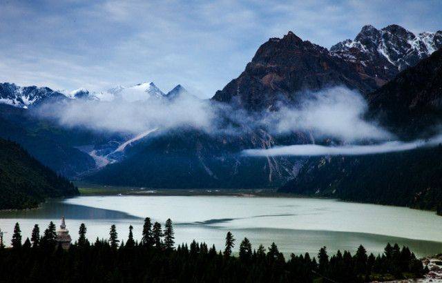 置身于德格的新路海,一汪碧綠的水,靜靜躺在群山的懷抱之中,清晨的薄薄霧氣彌漫于湖水之上,有種朦朧的仙境意味,寧?kù)o而吉祥?;蛟S只有清晨那一只只不知名的鳥兒掠過湖邊,才能打破這一片仿佛凝固的寧?kù)o。