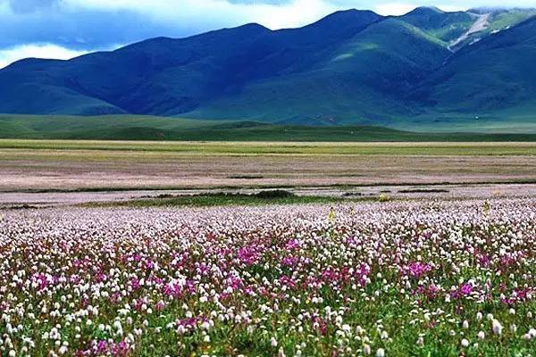 宗塔草原的花是其美麗的所在,全年有幾個(gè)花期,每個(gè)花期約有25天,并且顏色不同,每年春天至中秋時(shí)節(jié),自6月初起,依次為紅色、白色、黃色、紫色和紫紅色。