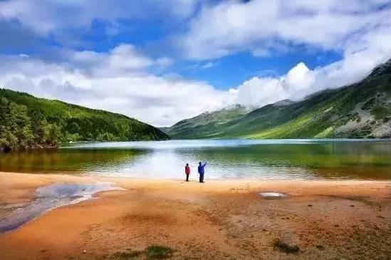 被原始森林和草甸環(huán)抱的五須海,當(dāng)?shù)厝擞鳛椤跋膳釆y的明鏡”,湖水碧綠透亮,將周圍的山水和天空全映照在湖面,幽靜的像一幅畫。從夏到秋周圍百花盛開,古樹盤根錯(cuò)節(jié)、藤枝攀沿纏繞,杜鵑樹伸向湖面,仿佛進(jìn)入原始古樸的仙境。