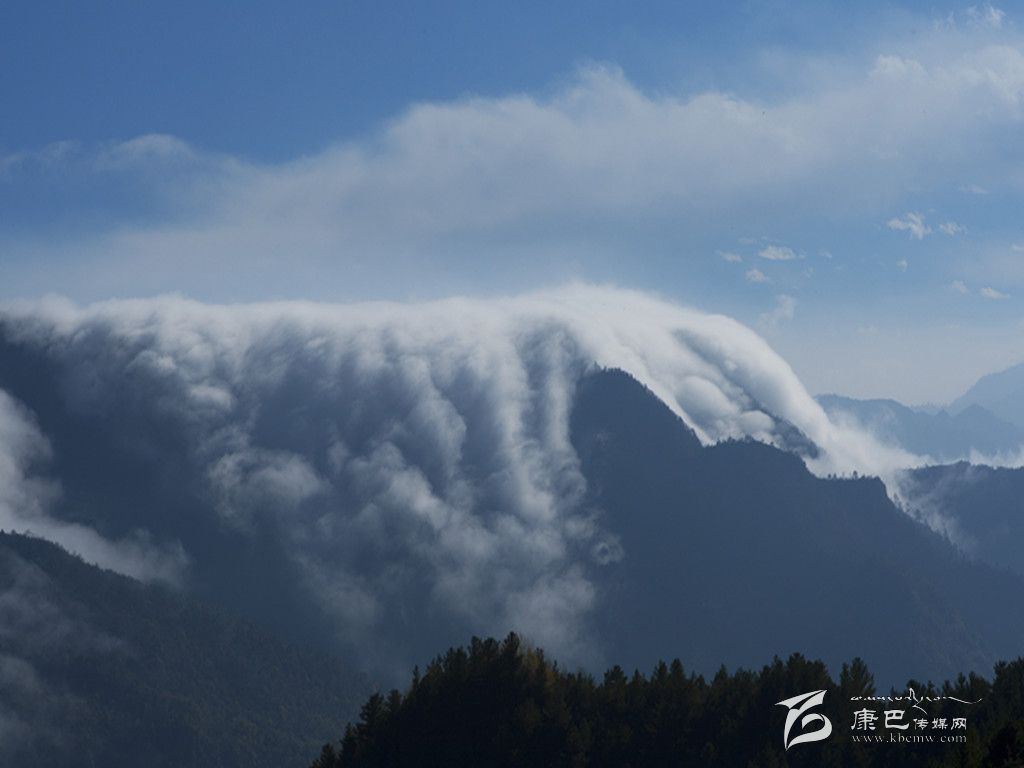 牛背山最為變幻無窮的,當(dāng)屬云海。從山頂向下望去,四周云海茫茫,時(shí)而舒緩,時(shí)而洶涌,潮起潮落。當(dāng)云海移至深谷處,會(huì)因?yàn)榫薮蟮穆洳疃纬善俨荚?,似飛瀑從天而降,氣勢磅礴,蔚為壯觀。“寵辱不驚,閑看庭前花開花落;去留無意,漫隨天外云卷云舒”。云卷云舒的景象,大概只有在牛背山才能被演繹得如此淋漓盡致吧。難怪有人這樣描述牛背山:“泥巴山、瓦屋山、峨眉山、夾金山、四姑娘山和二郎山在前, 貢嘎雪山在側(cè), 大渡河大峽谷在后, 幾乎天府之國的所有名山峻嶺在此時(shí)都變成了玲瓏盆景。而翻滾的云霧之下, 群山丘陵逐級降低, 緩緩融入稻浪翻滾的天府平原。”