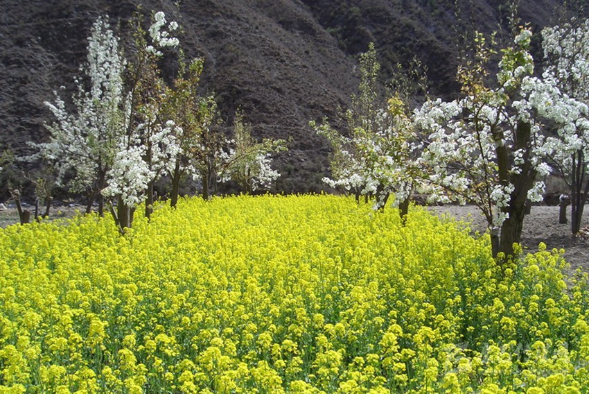 試想遠(yuǎn)處的雪山白雪皚皚,身旁有粉紅的桃花、雪白的梨花、金黃的油菜花,絢麗斑斕,光彩奪目,有春天的生機(jī)和活力,多了一種靈氣和不落塵埃的灑脫。賞花累了,沐浴在海螺溝的溫泉里,身體宛如畫龍點(diǎn)睛漂浮的暖云,能深切感受到來自海螺溝冰川地底的熱力。心境或怡然自得,或超脫塵世,或?qū)庫(kù)o澄明,或天人合一。春天里的海螺溝是花的海洋,是春的世界,是人間的仙境。