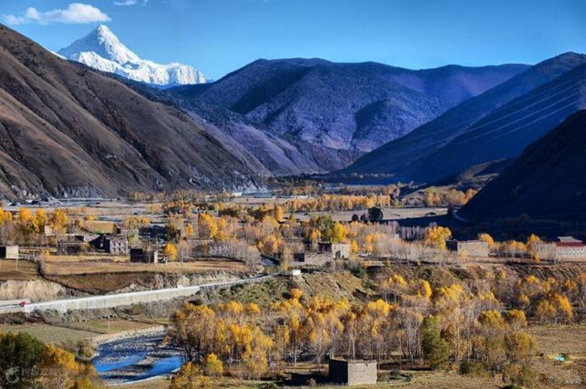 新都橋又稱東俄羅,位于318國道川藏南北線的分叉路口,號(hào)稱“攝影家的天堂“。在這可以拍攝到無垠的草甸,曲折的溪流,金黃的秋葉,山坡上大片在覓食的牛羊,散落著的藏族村寨。隨便一按快門都能得出一張絕美的風(fēng)景照。