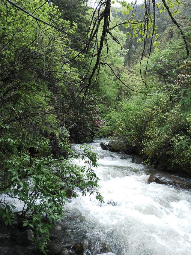 金湯河地區(qū)包括拉角溝在內(nèi),屬“森林植被”地區(qū),動植物資源十分豐富。海拔由低到高,沿途可見牛皮樺、青楊、漆樹、泡花樹、大葉櫟、雅樟、女貞、鐵杉、油松、川白樺、冷杉、云杉等。除此之外,還有木蘭、杜鵑、連香樹、白木以及蟲草、貝母、天麻、大黃等名貴中藏藥材。動物資源,除了“大熊”這個國寶之外,還有金絲猴、白唇鹿、牛羚、黑頸鶴、小熊貓、雪豹、盤羊、毛冠鹿、白馬雞、藏雪雞、獼猴、云豹、血雉等珍稀或國家保護(hù)動物。可謂是一塊真正的“寶地”。