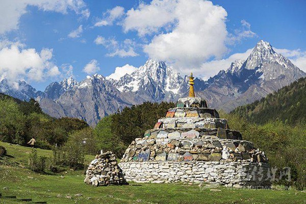 七色海邊有藏區(qū)的白塔以及無數(shù)的瑪尼堆,對藏民來說,這里是無比圣潔的地方,也是他們的朝圣之地。在七色海的四周圍繞著很多雪山,他們的海拔都在5000米以上,很多都是常年積雪不化,因此不論什么季節(jié)來木格措都能看到雪山的風景。
