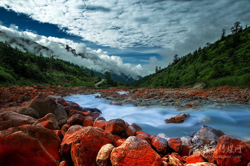 紅石是大自然贈(zèng)賜予貢嘎山地區(qū)最珍稀的物種之一。在海螺溝、燕子溝、南門關(guān)溝、雅家埂等景區(qū)里分布著大面積的紅石灘,每一塊石頭都被紅色旱蘚披上了一件美麗的紅色外衣,紅石在河流兩旁堆積,成群的紅石變成一種流動(dòng)的紅色,與清冽的流水相伴順流而下,讓人感嘆大自然的神奇造化,是世界上最大的紅石公園。