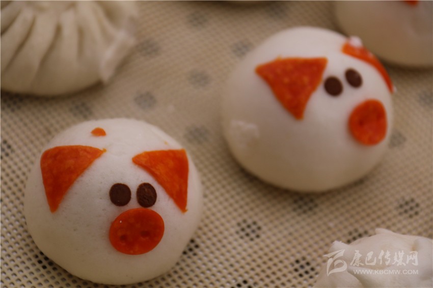 “這個(gè)包子也長得太可愛了吧!”記者順著旁邊的驚呼聲看去,五歲的肖紅拿著一個(gè)做成小豬樣的包子對著她奶奶說。趕緊走近店里,記者也來了份兒奶黃餡兒的卡通小豬包子,一口咬下,奶黃順著缺了的口子流出來,趕緊吸了一口,甜甜的味道瞬間在舌尖化開。為了滿足記者的好奇心,老板介紹說:“將面團(tuán)捏好搟薄,再包入餡,收口朝下,像包包子那樣捏好口,捏出有點(diǎn)像豬的型狀,再撕一點(diǎn)黃色面團(tuán)做個(gè)豬鼻子,用一根筷子按下去成兩個(gè)鼻孔,再捏兩只耳朵和一根尾巴,準(zhǔn)備些黑芝麻,做眼晴,拿根筷子點(diǎn)點(diǎn)水沾一個(gè)芝麻放在豬身上,可愛的卡通小豬包就做好了?!钡赇伹皵D滿了小朋友,老板告訴記者:“這種卡通包子之所以受小朋友的喜歡不僅是因?yàn)槠淇蓯鄣目ㄍㄍ獗?,而且我們所有的卡通包子餡兒都是甜的。我們精準(zhǔn)定位,投孩子們所好,取得的成效還不錯(cuò)。這次來參加美食節(jié),只帶來了小豬和刺猬兩種卡通形象的包子,賣得挺好,準(zhǔn)備在接下來的幾天將小猴子等卡通形象的包子也帶過來?!?/p>