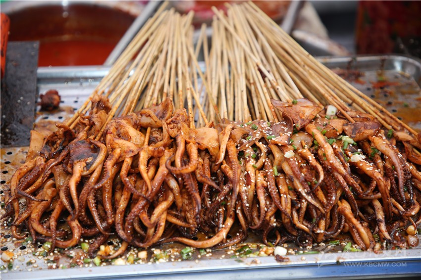 作為一個(gè)四川人,對于麻辣味的食物毫無抵抗力,在康定后街林立的商鋪中,記者一眼就相中了“深海魷魚花”這家店??粗褐t油的魷魚花靜靜地躺在紅椒和芹菜間,記者咽了咽口水,向老板買了一份兒?!罢媸羌兗兊拇ㄎ秲簺]錯(cuò)了,又麻又辣的。”記者對老板說。老板回答到:“魷魚花最講究的就是刀法了,要切得好看。雖然在顧客看來都差不多樣子,但是我每次都要經(jīng)過細(xì)細(xì)斟酌再一刀一刀的切,爭取多弄幾種樣式,現(xiàn)在我的??蛡円矔?huì)細(xì)細(xì)地考究我切的魷魚花了。以前我只賣烤魷魚,只是在家里偶爾會(huì)給我兒子做魷魚花,后來看我兒子喜歡吃,才開始慢慢地賣魷魚花,沒想到還是很受歡迎。這次美食節(jié),我發(fā)現(xiàn)沒有人做魷魚花,所以我就帶著我兒子喜歡的魷魚花來參加這次美食節(jié)了?!崩习逍χ浾哒f。