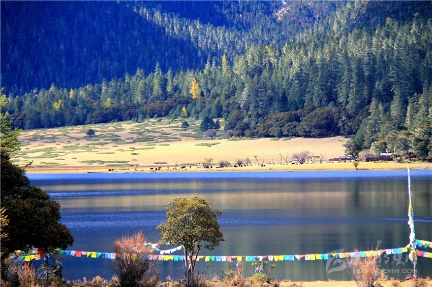秋季的木格措風(fēng)景區(qū),五彩斑斕的彩林倒映在明麗的湖水中,蒼茫的高山灌叢比夏花還妖艷動(dòng)人,金燦燦的陽(yáng)光,深邃的木格措圣湖凸顯著鮮明的自然個(gè)性,好像走進(jìn)了五彩繽紛的光影世界。