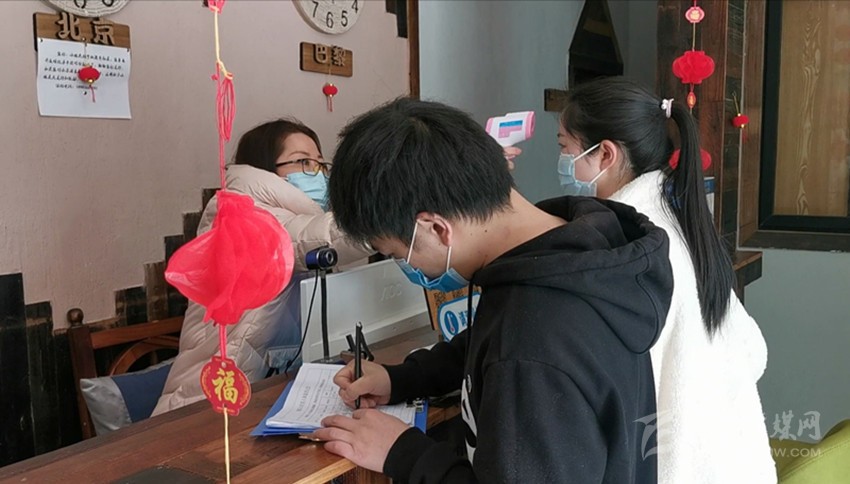 游客在填寫個人健康信息。
