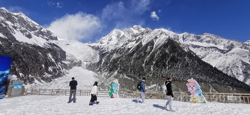 “前天從網(wǎng)上看到海螺溝景區(qū)即將開放的信息,別提多帶勁兒了。這次疫情發(fā)生就一直在家呆著,悶太久了,就想著疫情可控可防的時候,一定要來川西走走,剛好海螺溝離成都車程近,網(wǎng)絡(luò)風(fēng)評也是有口皆碑的?!边h道而來的寧波游客吳先生目之所及盡是玉樹瓊枝、銀裝素裹的雪原冰川風(fēng)光,激動不已地說:“透透氣、玩玩雪、泡泡湯,回歸自然的感覺真太好了!”