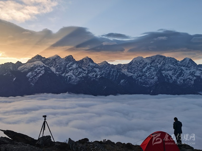 迷魂凼能看見云海的幾率很高,在一眾雪山的包圍里云海翻滾著波濤,好像想掙脫雪山的懷抱奔流向更遠的地方……