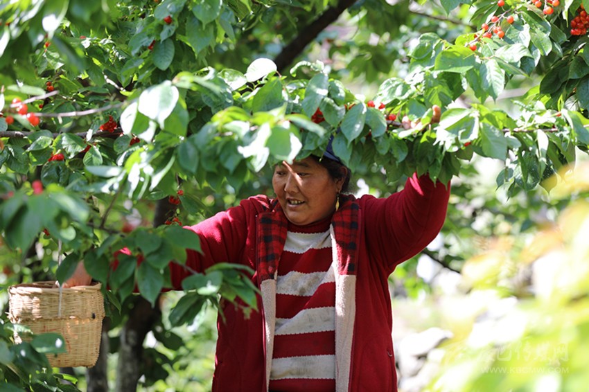 “樹上的恩桃兒隨便摘、敞開吃!”板板橋農家樂老板鄧安美熱絡地招呼著客人,忙碌中掩飾不住內心的喜悅?!斑@周末14個房間全部訂滿,午餐、晚餐也已經(jīng)訂了40桌。”據(jù)了解,今年紅櫻桃節(jié)活動開始前一周,瀘定縣內及紅櫻桃節(jié)舉辦地杵坭村周邊的酒店、民宿就已供不應求。漫山遍野間,一串串已經(jīng)成熟的櫻桃在燦爛陽光的照耀下,紅艷欲滴;農家樂里,樹下擠滿了三五成群的游客,有的邊摘邊吃,有的喝茶聊天,好不悠然自怡。