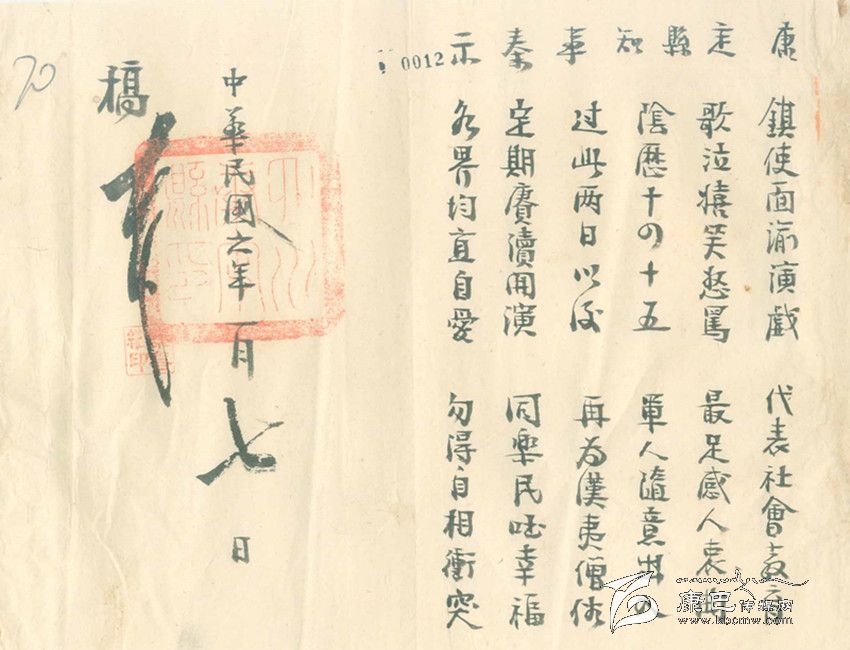 除此之外,康定縣知事又煞費(fèi)苦心地再寫(xiě)了一篇“順口溜”式的告示,告示上寫(xiě)道:鎮(zhèn)使面喻演戲,代表社會(huì)教育。歌泣嬉笑怒罵,最足感人衷曲。陰歷十四十五,軍人隨意出入。過(guò)此兩日以后,再為漢藏僧俗。定期庚續(xù)開(kāi)演,同樂(lè)民國(guó)幸福。各界均宜自愛(ài),不得自相沖突。