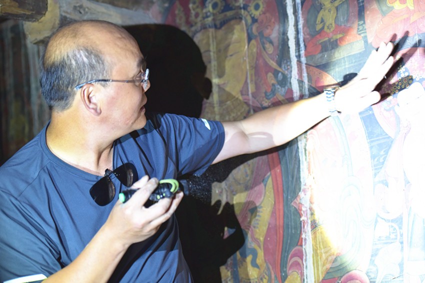 網(wǎng)訊(記者 唐闖 /圖)82日, 在我州石渠縣真達(dá)鄉(xiāng)嘛達(dá)村嘛達(dá)寺一座長(zhǎng)期封閉的護(hù)法殿內(nèi),故宮博物院藏傳佛教文物研究所所長(zhǎng)、研究員羅文華率領(lǐng)的團(tuán)隊(duì)發(fā)現(xiàn)相當(dāng)完整的明代藏傳佛教壁畫和泥塑雕像,這是迄今為止石渠縣境內(nèi)發(fā)現(xiàn)的最為重要的藏傳佛教遺存之一,此次發(fā)現(xiàn)填補(bǔ)了藏傳佛教研究的多項(xiàng)空白。
