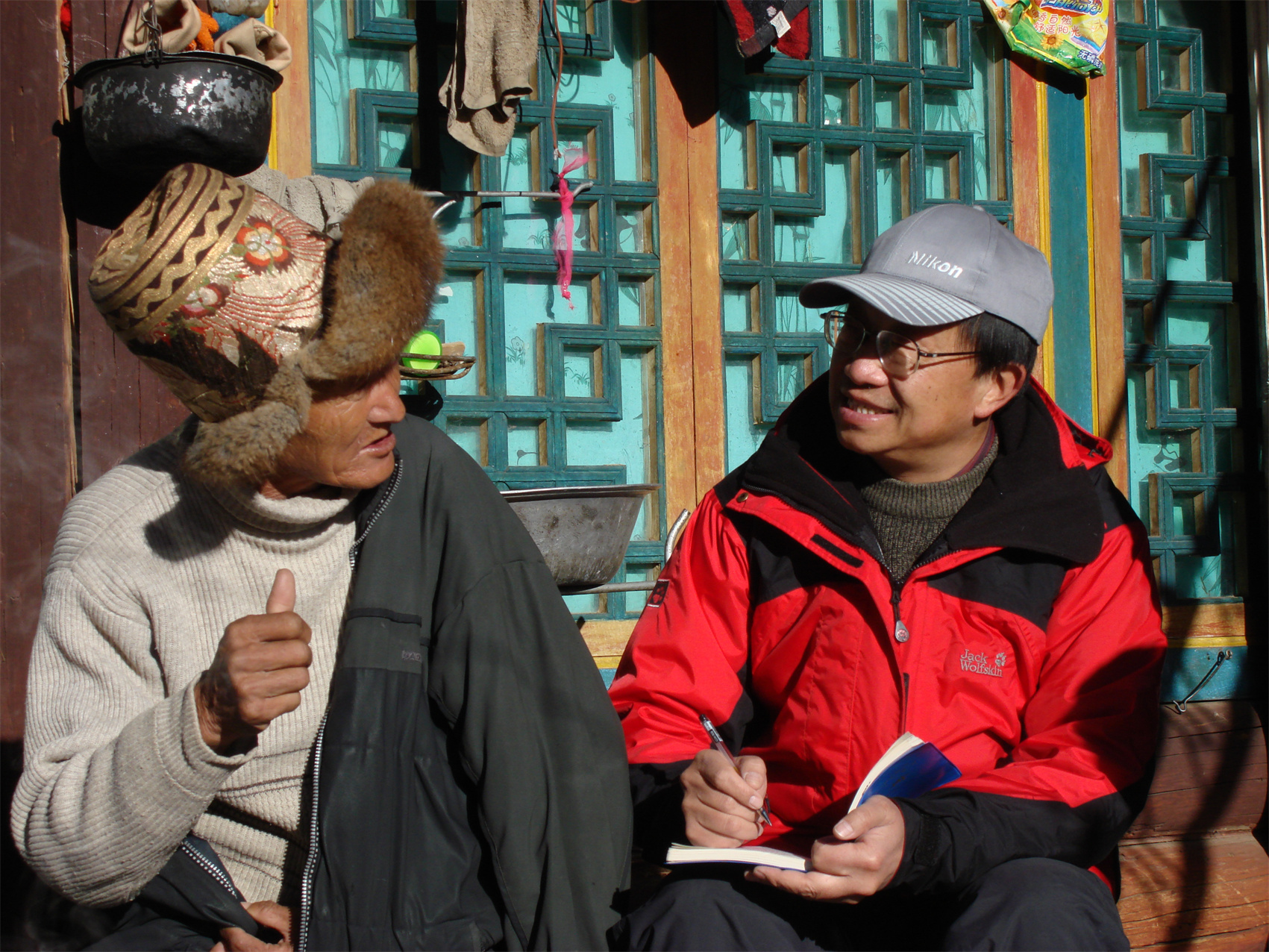 2007年作者在《甘孜日?qǐng)?bào)》任總編輯時(shí)深入農(nóng)牧區(qū)采訪。