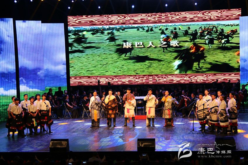 配合著交響樂,由仁真旺杰作詞、阿金作曲的《康巴人之歌》作為當晚第一首出演的歌曲,顯得更加氣勢恢宏,男聲的合唱也中氣十足,頗有些回腸蕩氣的意味。