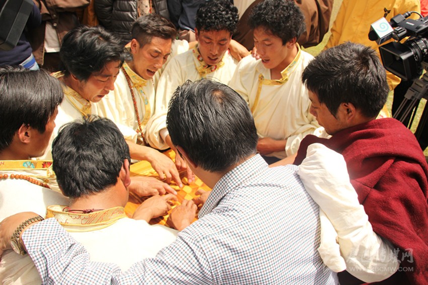 據相關人員介紹,“手指鍋莊”是人們節(jié)慶活動、日常休閑、表達情感的首選形式,已經有近千年的歷史;目前,該縣系統(tǒng)掌握“手指鍋莊”的民間藝人有4人。白玉縣2015年開展非物質文化遺產普查時首次將其納入“非遺”保護范圍,并經國內權威專家、學者考察證實為世界上目前發(fā)現的唯一用手指跳的鍋莊。該“手指鍋莊”目前擁有8套舞蹈基本步伐組合,與其相配的曲目有120余首。它有三大特點尤其獨特,一是“以指代身”跳鍋莊,將“全身參與”的鍋莊集中在手指上進行表現,減少了對場地和人數的要求。二是,舞具系統(tǒng)且多取材于蓮花生大師和珠姆王妃裝扮形象,具有濃厚的歷史文化氣息;正式表演時表演者一般戴蓮花生大師法冠狀頭飾,身穿法師氆氌、鷹式燈籠褲,腳蹬十全十美鞋,腰懸天雷寶劍,背背護身嘎烏。三是只采取當面演示的方式進行傳承,沒有文字或影像資料,這種傳承方式在世界文化傳承上都具有“古樸性”。因此,也有學者將其稱為“藏族鍋莊的密碼,活態(tài)的舞譜記載”甚至是“康巴鍋莊的根脈”。