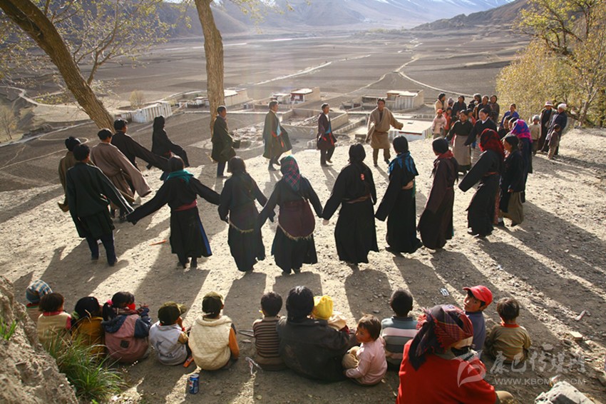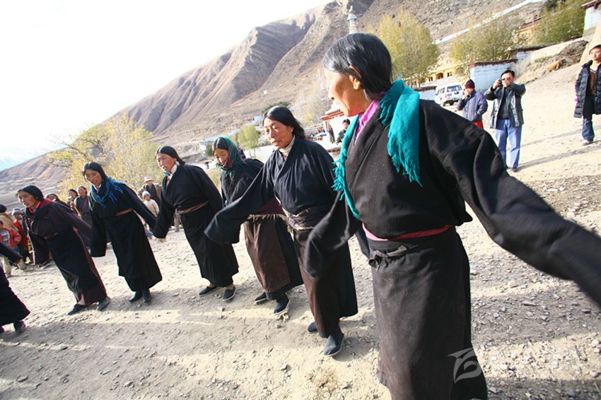 弦子又名為“協(xié)”,在甘孜縣境內(nèi)有孔薩協(xié)欽、仲薩協(xié)、格達(dá)協(xié)、郎扎協(xié)等,其中白利寺五世格達(dá)活佛創(chuàng)建于二十世紀(jì)三、四十年代的格達(dá)弦子尤為著名,跳此舞無時(shí)間規(guī)定。起初用此歌祭祀亡魂、超度靈魂、免荒災(zāi)。以后逐漸豐富其內(nèi)容而流傳于民間。表演時(shí)無伴奏樂器,起舞時(shí),男女兩隊(duì)輪歌共舞,圍成圓圈,相對而立,男女舞者統(tǒng)一著樸素藏裝,男舞者抬頭,頭戴金氈帽, 身著“氆氌”衣,但不配戴腰刀;女舞者低頭,扎小辮子,身著“氆氌”衣,腳穿藏鞋,沿著弧線,先慢后快,邊歌邊舞,舞蹈的腳步動作矯健,帶有“夏卓”的風(fēng)韻。格達(dá)活佛的詩歌,具有藏族文學(xué)的新內(nèi)容和新思想,每當(dāng)節(jié)日人們就在優(yōu)美的旋律中盡情起舞,格達(dá)弦子的詞、曲均由格達(dá)活佛創(chuàng)作。