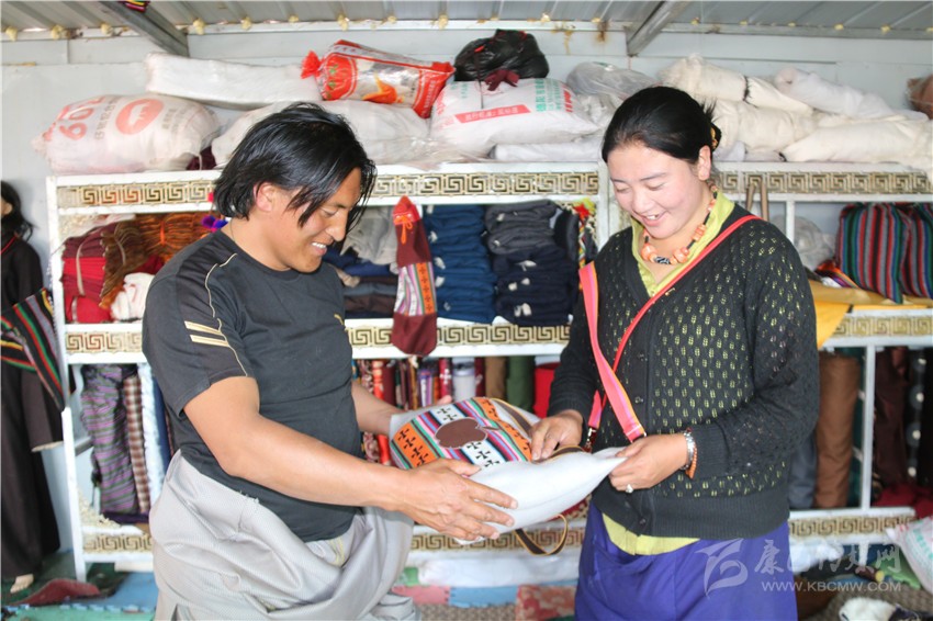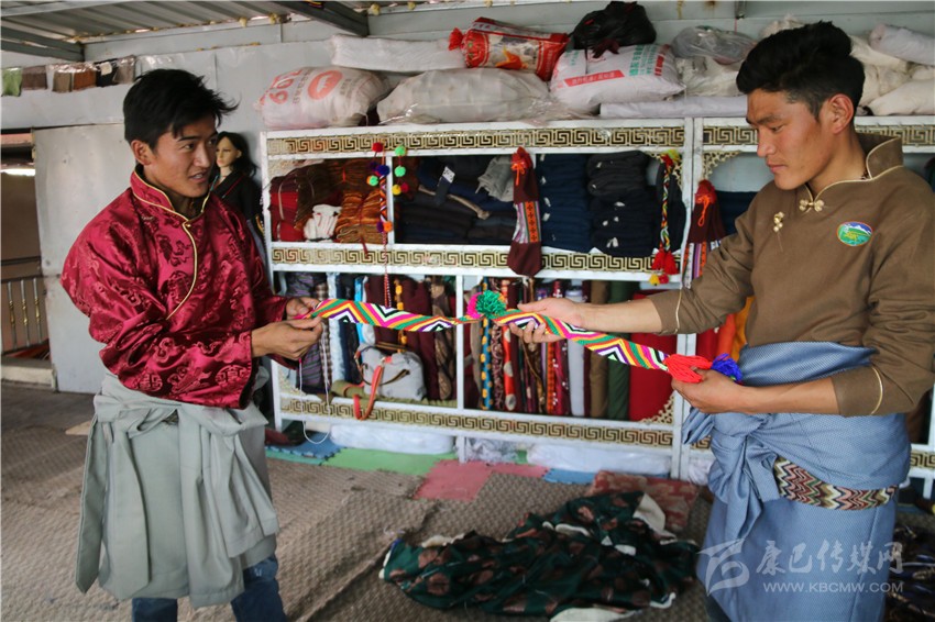 安孜鄉(xiāng)作為白玉縣海拔較高的鄉(xiāng)鎮(zhèn)之一,夏天是十分短暫的,連日來的晴好天氣,也透著絲絲寒氣。牧民阿剛想要量身定做一套過冬的藏裝,9月13日,他來到白玉縣阿察鎮(zhèn),一家民族服飾商貿(mào)公司吸引了他的目光?!拔覀冞@里的服裝面料是本地羊毛和從浙江進(jìn)的上等面料,做工考究,很多工序是純手工制作,服裝樣式你可以根據(jù)你的喜好指定,我們包你滿意?!钡陠T仁真熱情地介紹。聽了仁真的介紹,阿剛用手捻了一下服裝用料的質(zhì)地,看到印有“祥陽措”商標(biāo)的精美包裝袋,商店里擺放的五彩斑斕、高端大氣的藏式男女服裝,他有些動(dòng)心了?!吧a(chǎn)這些服裝的都是我們納塔鄉(xiāng)的牧民,你可以考察我們的服裝用料、生產(chǎn)流程,再作打算。”仁真熱情洋溢地介紹說。